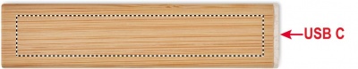 Powerbank 2600 mAh i bambuhölje. Kapacitet för smartphone, utgångsström DC5V/1A. Inklusive USB Type-C laddningskabel med Type-A adapter. Ingång/utgång: USB typ C.