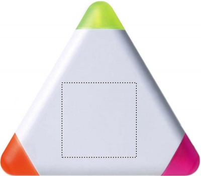 Trekantig överstrykningspenna i ABS med 3 olika färger: gul, fuchsia och orange. Stor tryckyta.