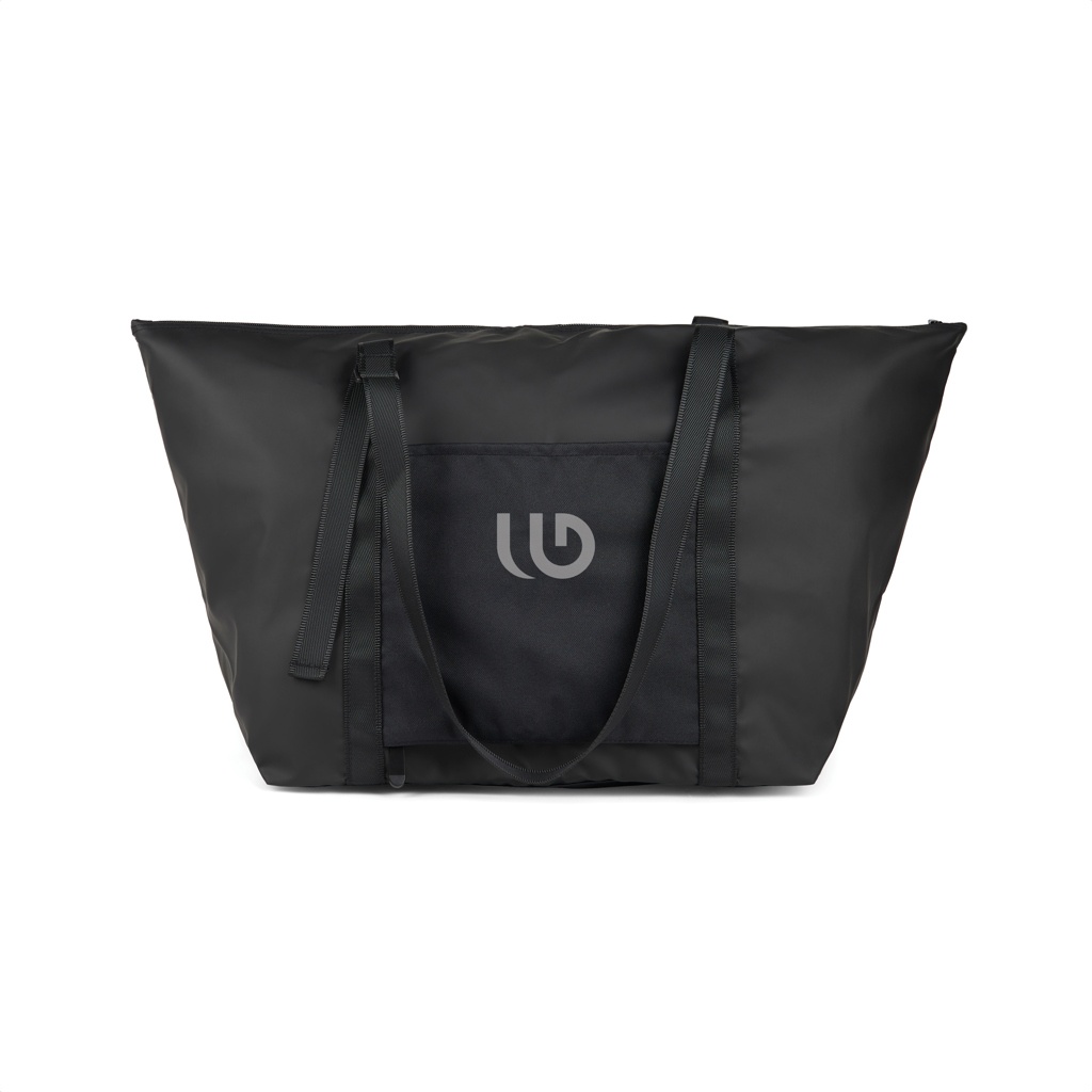Den perfekta resekamraten, weekendväska tillverkad av superlätt GRS-certifierad polyester med en slitstark PU-beläggning. Väskan viks enklet ihop och säkras smart med en rem och ett spänne för kompakt förvaring när den inte används. Väskan har en smart ytterficka, med dragkedja i botten, som kan omvandlas till en säker hållare för att sätta över handtaget på din resväska. Justerbara remmar gör att du kan bära den i handen eller över axeln. En mindre innerficka för dina viktiga saker. Dessa mångsidiga väskor är inte bara lätta att bära, de är också designade för att enkelt vikas ihop och förvaras kompakt i ditt bagage, vilket ger bekväm extra förvaring /utan att addera onödig vikt. Det totala återvunna innehållet baseras på produktens totala vikt. Denna produkt innehåller 52% GRS-certifierad återvunnen polyester.