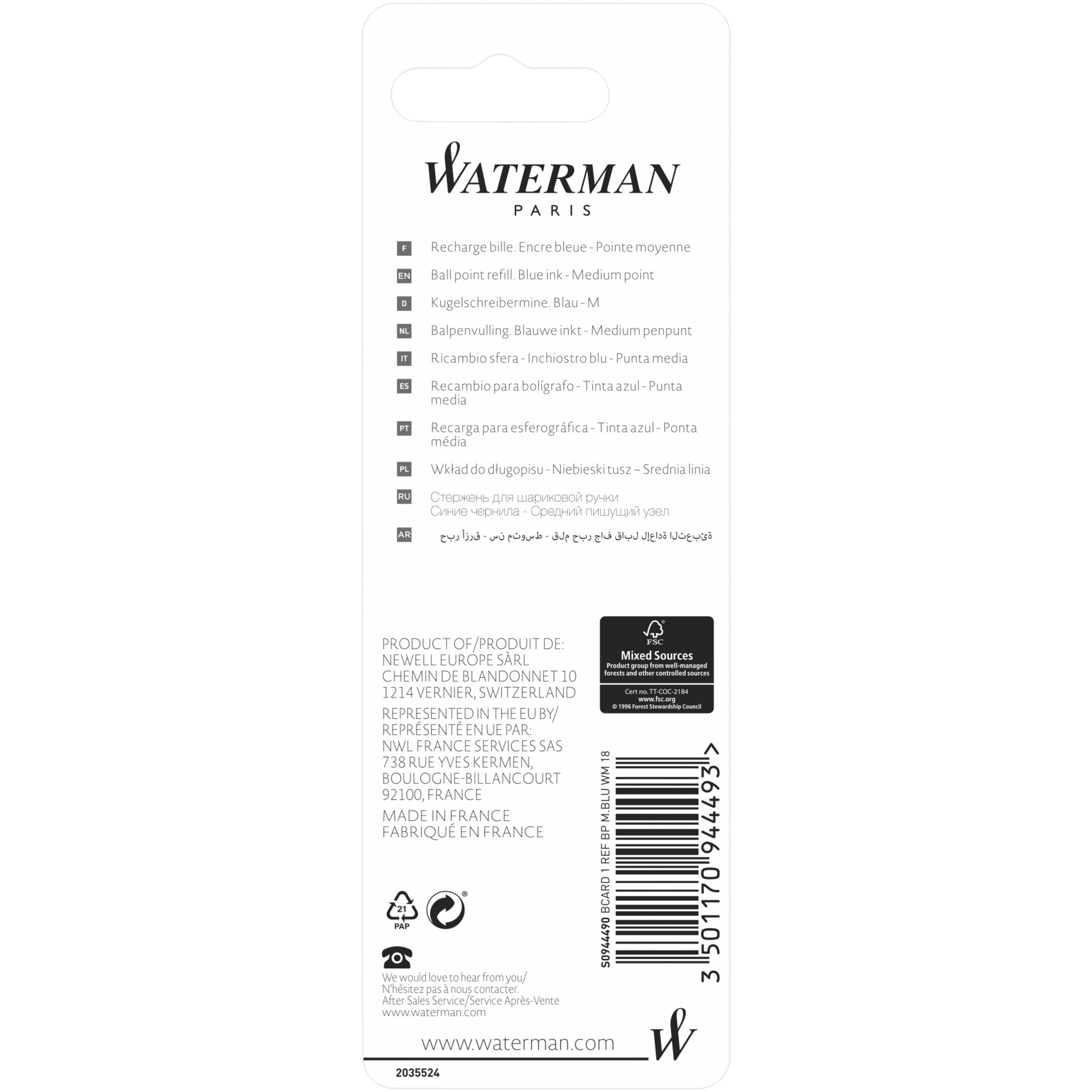 Produkter Små reklamgåvor Waterman kulspetspenna refill